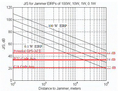 - GPS receiver jamming resistance, J/S: 22dB for C/A code, 34dB for P(Y) code