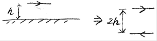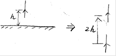 (Solution) 접지면을 기준으로 다이폴과 대칭 위치에 동일 방향으로 전류가 흐르는 다이폴을 배치하고 접지면을 제거. 두 다이폴이 자유공간에서 방사하는 것으로 원래 문제를 대체할 수 있다.
