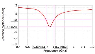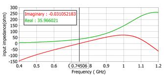 e) 공진 주파수 = 745MHz, 공진시 저항 = 35.96Ω