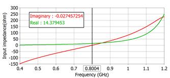 e) 공진수파수 = 800MHz, 공진시 저항 = 14.4Ω