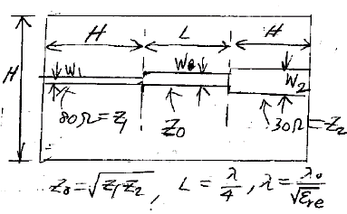 = 2.35mm), RL = 100¥Ø, Z1 = 70.7¥Ø (w2 = 1.23mm), L = ¥ë/4