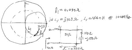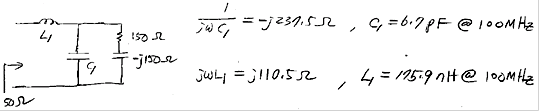 a load impedance ZL = 150–j150 ¥Ø, design an LC matching network that transforms ZL to 50 ¥Ø.