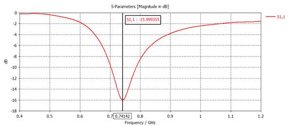 Plot |S11| (dB) and add an 'Axis Marker' to find the frequency for minimum