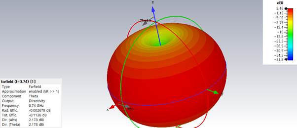 Farfields, farfield (f=0.74) [1], Abs, FARFIELDS - Farfield Plot, Show Structure, 3D