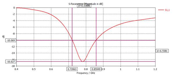 and add 'Measure Lines' at |S11| (dB) = -10 dB.
