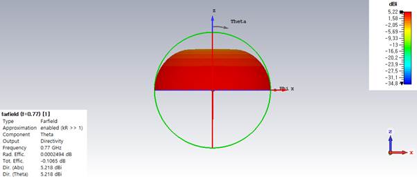 Farfields, farfield (f=0.77 [1], Abs, FARFIELDS - Farfield Plot, Show Structure, 3D