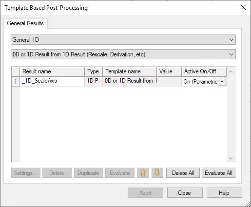 Tools, General 1D, choose the 0D or 1D result from 1D Result (Rescale,