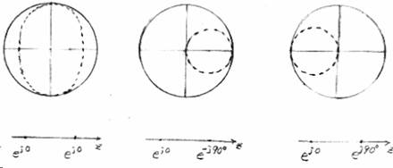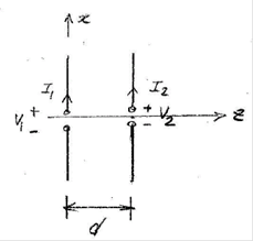 그림: 2소자 배열 안테나. 소자간 거리d, 소자 전류 ![]()