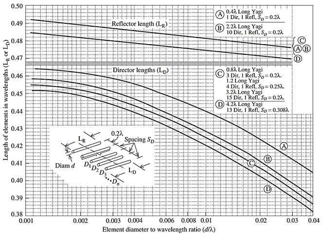 그림: RSGB 야기 안테나 설계. 소자 직경 4mm[Cebik, http://on5au.be/content/a10/vhf/wu.html