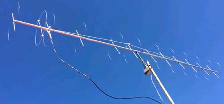 그림: 광대역 급전기와 지향기를 사용한 야기 안테나. Xtreme Signal HDB91X, 450-900MHz, 13.5-23dBi,