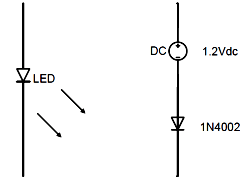 - LED를 위 그림에서와 같이 1.2Vdc 전원과 1N4002 다이오드의 직렬회로로 대체