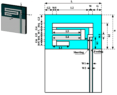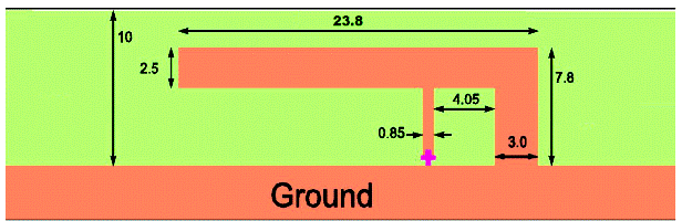 (±×¸²) Æò¸éÇü ¿ª FÇü ¾ÈÅ׳ª(PIFA) ±¸Á¶. ¿ªFÇü ¾ÈÅ׳ªÀÇ ¹æ»çºÎ¸¦ Æò¸éÀ¸·Î ÇÏ°í ´Ü¶ôÇÉ(short pin)ÀÌ À§Ä¡¿Í ±ÞÀüÁ¡(feed point)ÀÇ À§Ä¡¸¦ ÀûÀýÈ÷ ÇÏ¿© ±¤´ë¿ª Ư¼ºÀ» ±¸ÇöÇÏ¿´´Ù.
