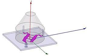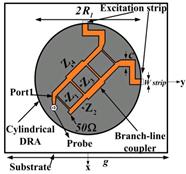 dielectric resonator antenna fed by a quadrature hybrid coupler. Substrate: εr