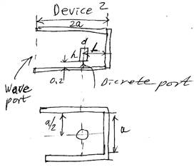 1) Simulate Device 1 using the 2-fold symmetry in the structure. Get S11 and move the reference plane to the the aperture.
